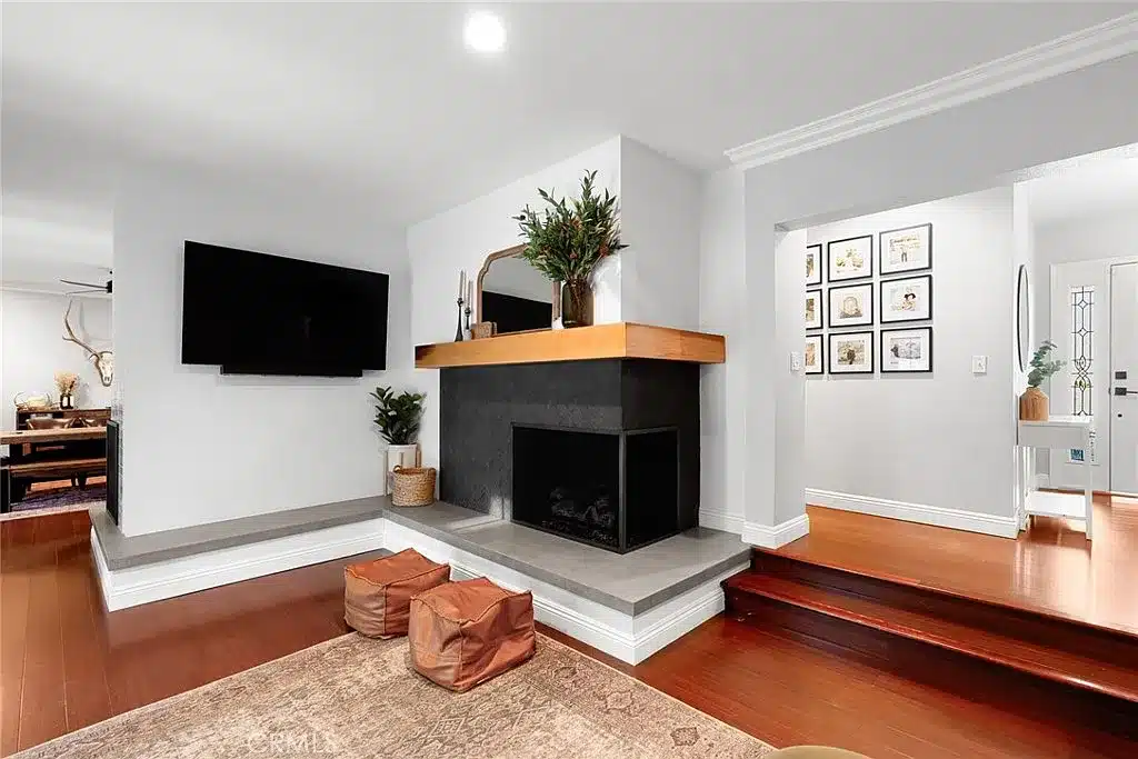 Step inside to find gleaming hardwood floors, two cozy wood-burning fireplaces, and a remodeled kitchen featuring granite countertops and modern finishes. Both bathrooms have been elegantly redesigned with designer tile, marble, and quartz countertops, adding a luxurious touch to this inviting space.